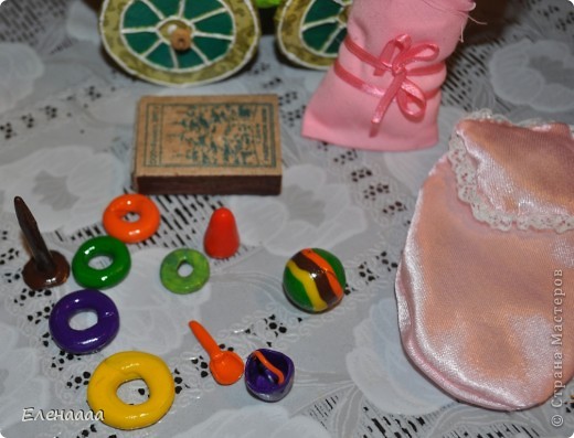 А вот и пирамидкой решили поиграть! Соберем - раскидаем колесики, потом снова соберем и положим на место. Игрушки слепила из пластики и покрыла лаком
